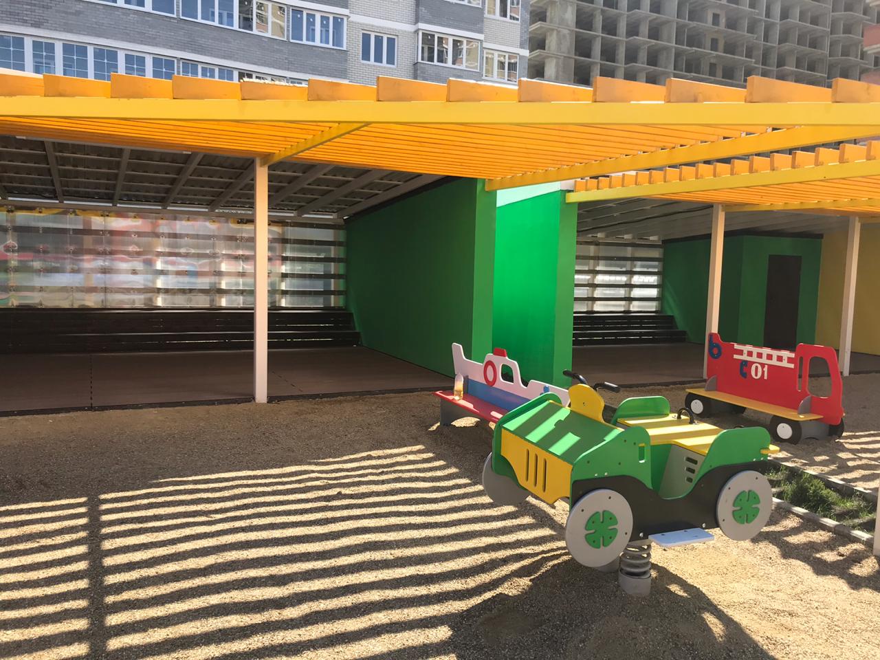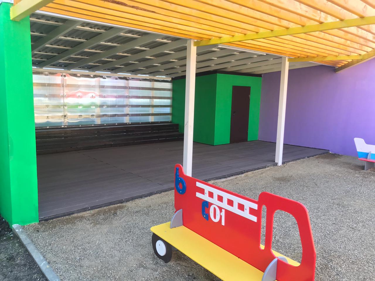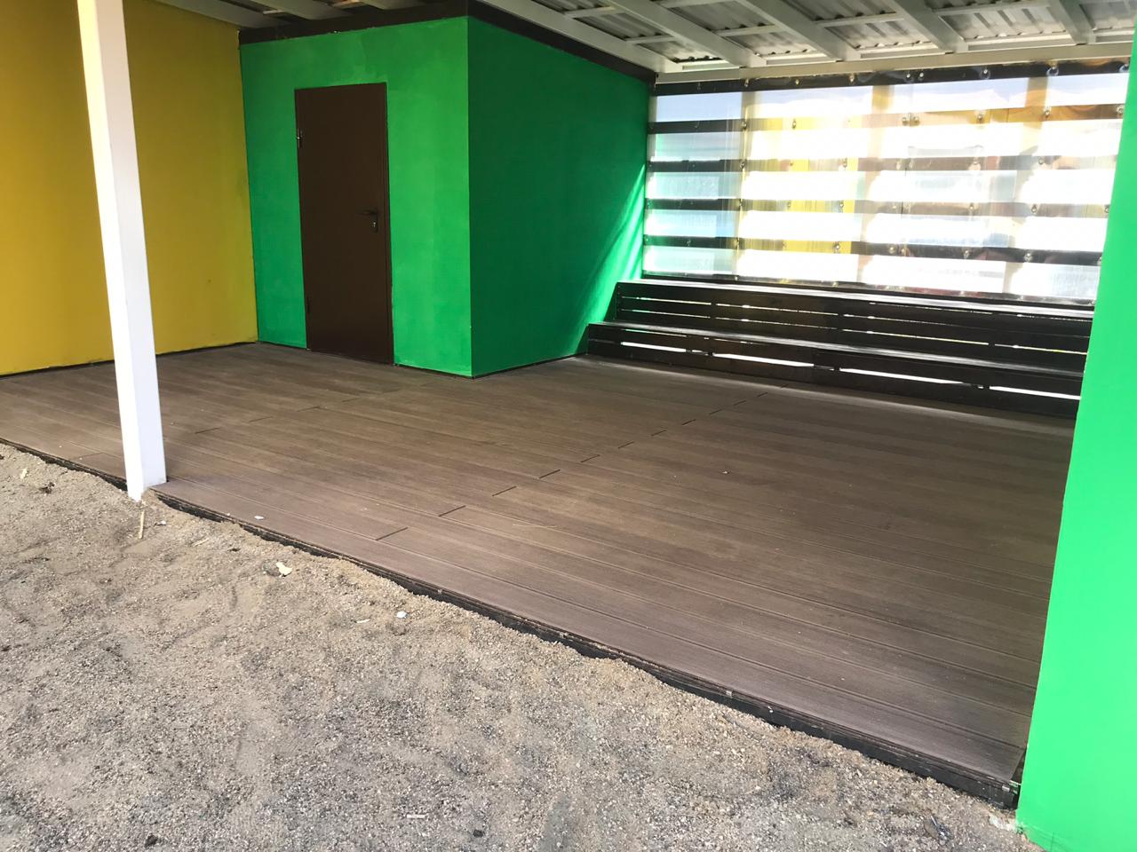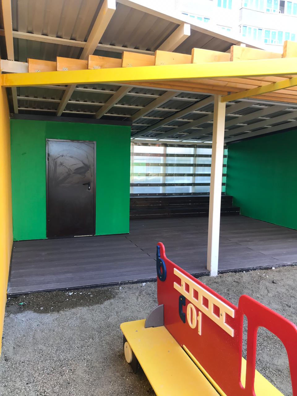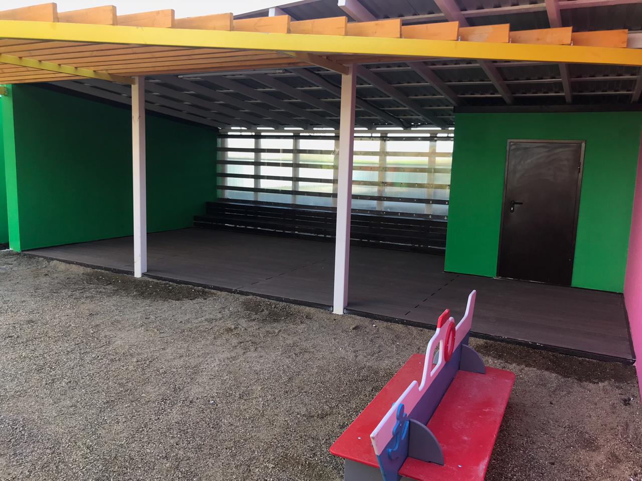 Краснодар, беседки в детском саду Мозайка, декинг вельвет классик коричневый