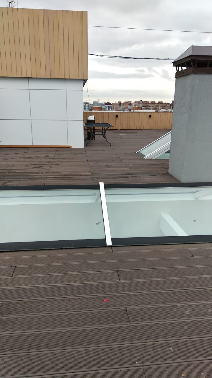 Краснодар, эксплуатируемая кровля, частное домовладение, декинг вельвет классик коричневый, сайдинг винтаж натуральный
